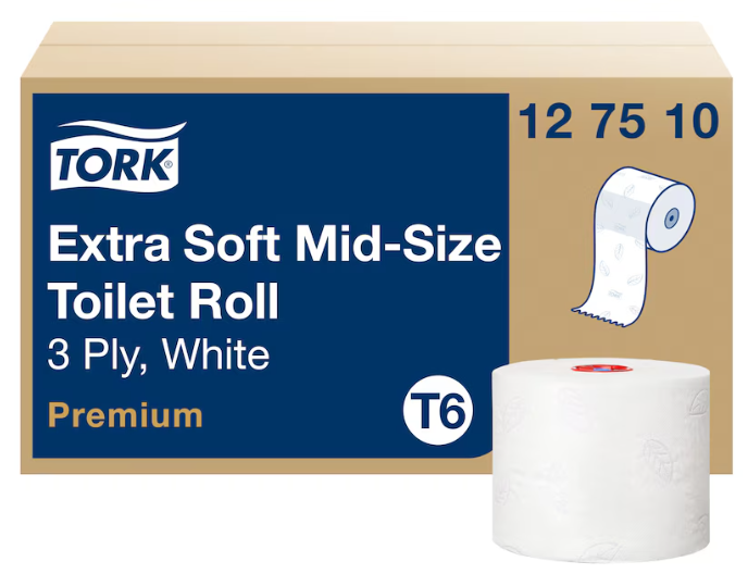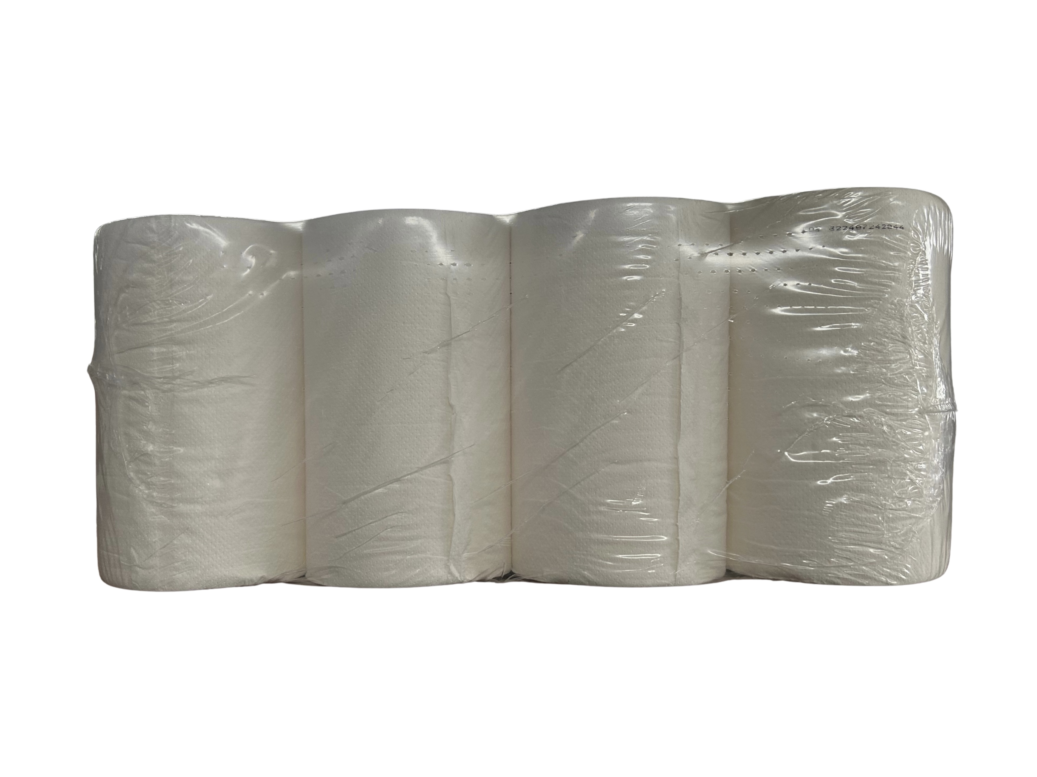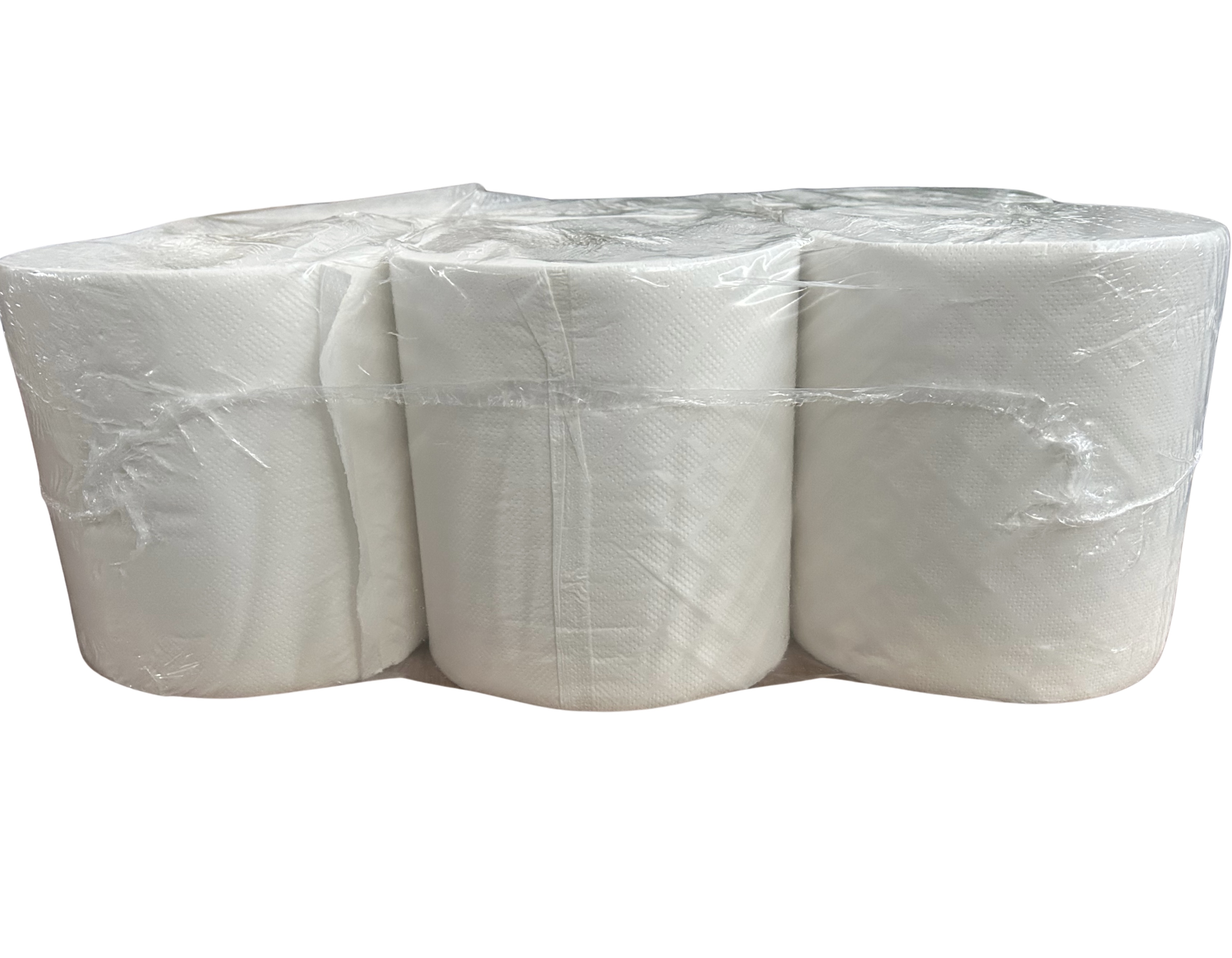 Wischtuchrollen Midi mit Innenabwicklung 2-lagig Coreless Zellstoff Hochweiß perforiert punktgeprägt 150lfm 6 Rollen im Bund, 40 Bund je Palette