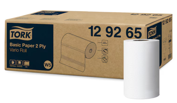 Wischtuchrollen Mini mit Innenabwicklung 2-lagig Zellstof hochweiß perforiert 200 Blatt a´ 35cm 70lfm je Rolle 12 Rollen im Bund, 55 Bund je Palette