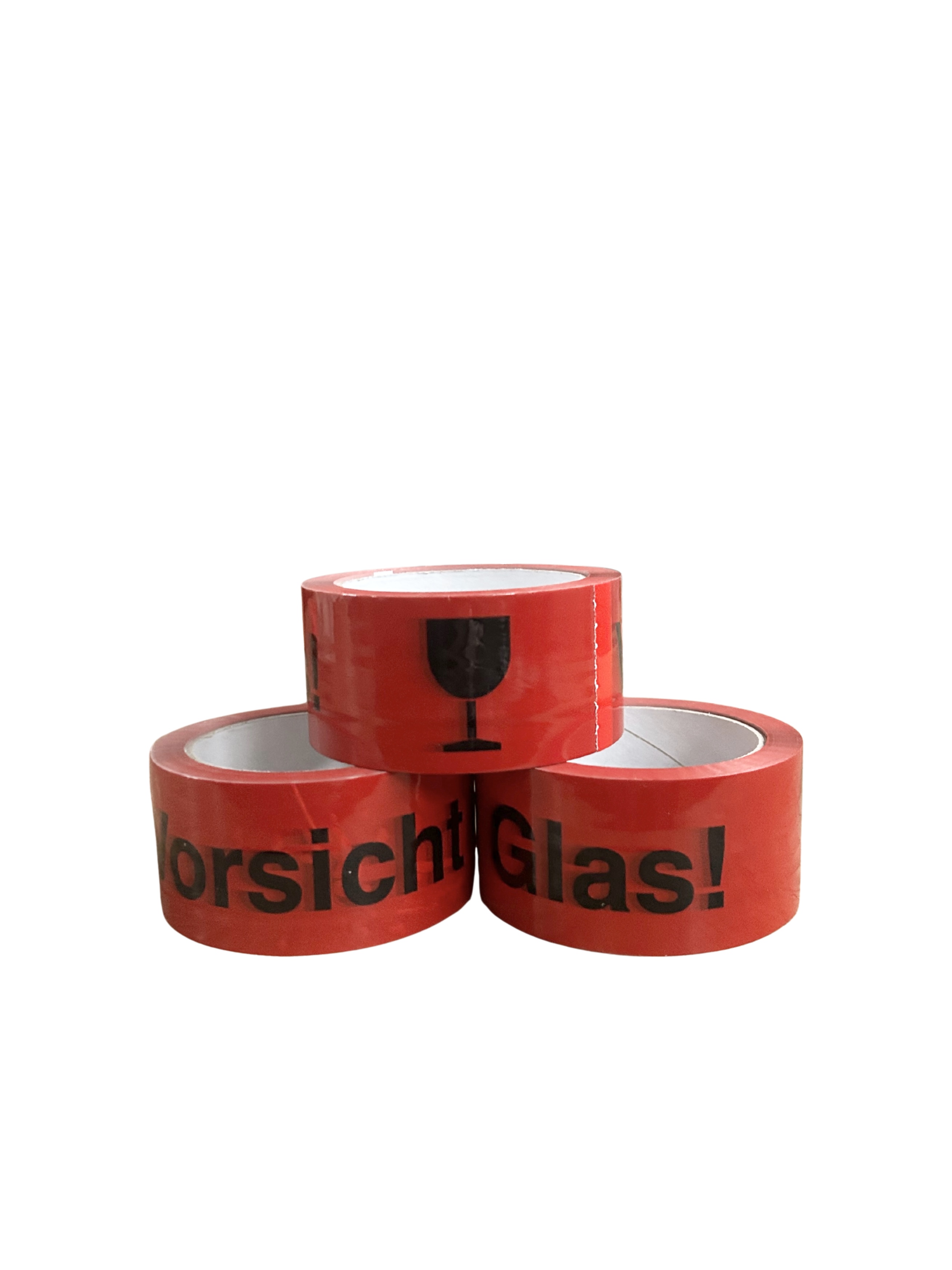 Verpackungsband 'Vorsicht Glas' mit Acrylat-Kleber 28my leise abrollbar Rot und 1-farbig schwarz bedruckt 50mm x 66lfm, 36 Rollen je Karton