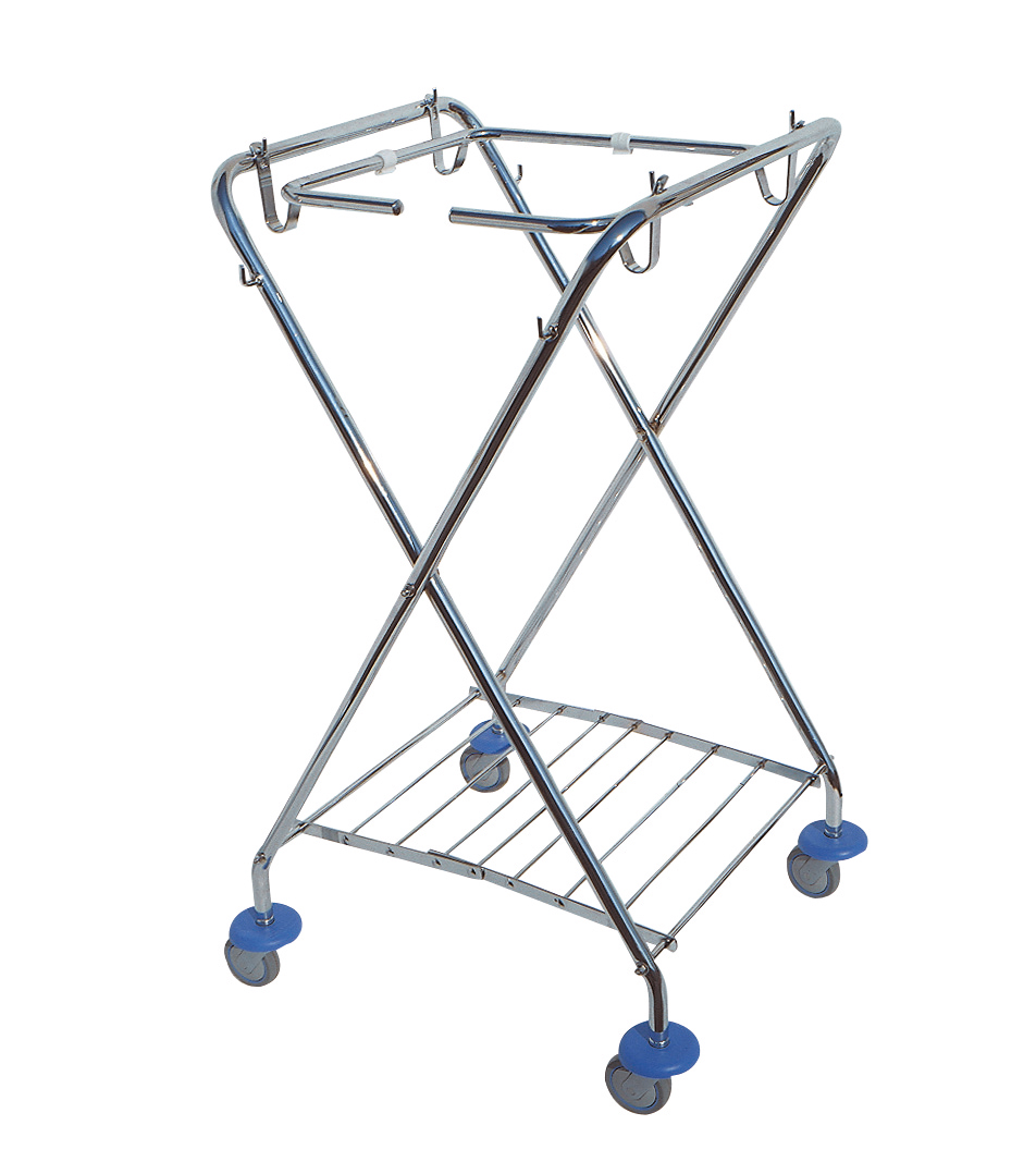 X-Wagen eckig verchromt zusammenklappbar mit einhängbarem Halterahmen für 120-Liter-Säcke mit 80mm Rädern und 3 Müllsackklemmen, 2 Stück im Karton