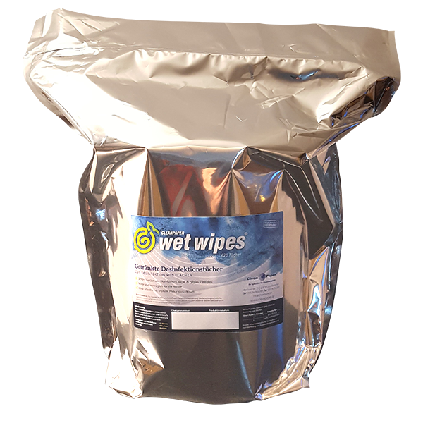 Desinfektionstücher Cleanpaper Wet Wipes® mit Reinigungslösung getränkt 750 Blatt je Rolle im Beutel verschweißt, 6 Rollen im Karton