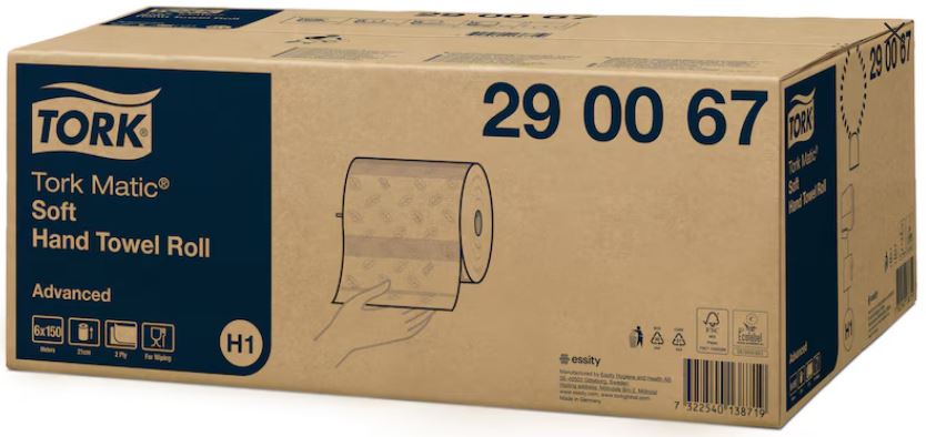 Tork H 1 Rollenhandtuch Advanced 2-lagig Tad & Tissue hochweiss 150lfm 612 Blatt a´ 21 x 24,5cm je Rolle 6 Rollen im Karton, 32 Karton je Palette
