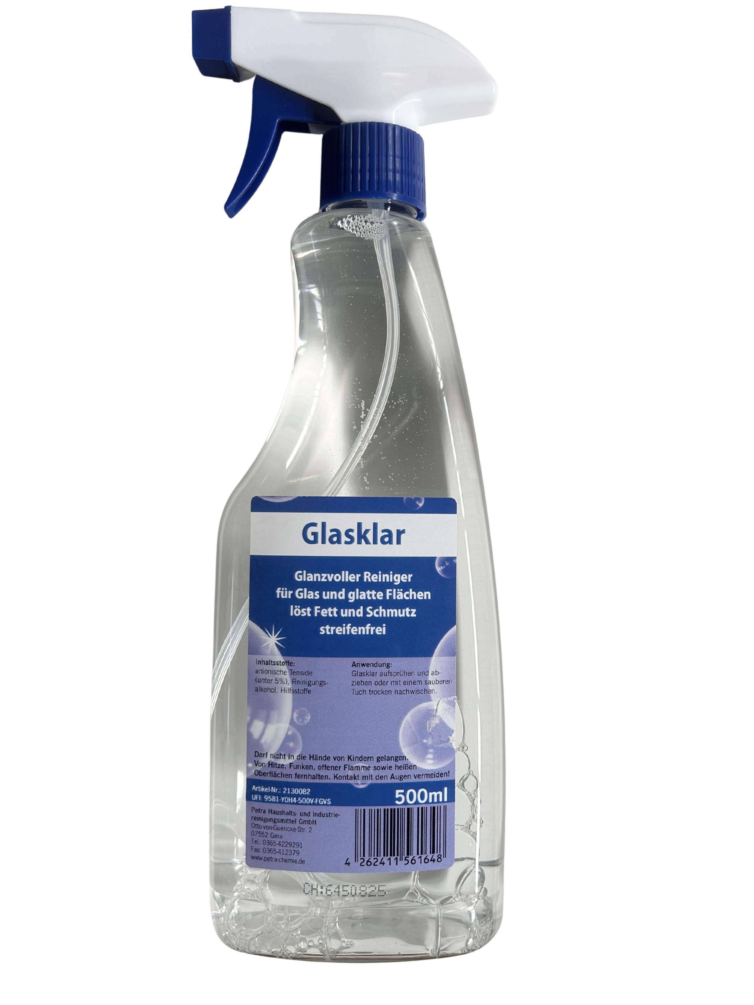 Glasklar Fensterreiniger mit Fettlöseformel 500ml gebrauchsfertig sowie verdünnbar bringt streifenfreien Glanz, 20 Flaschen im Karton