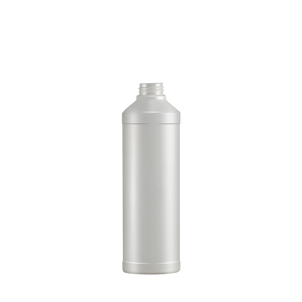 Rundflasche 500ml SV500R HDPE weiß DIN 28 mit tastbarem Warndreieck 35g je Flasche 108 Stück im Halbtray, einzeln erhältlich