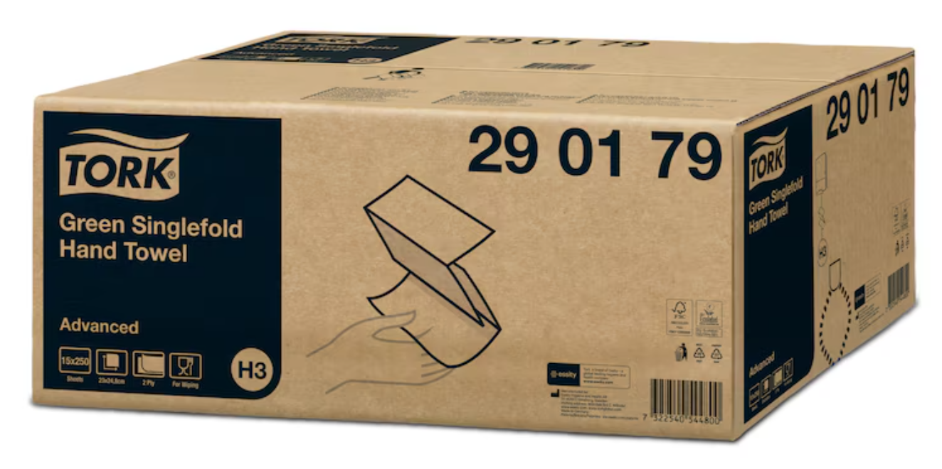 Tork H 3 Papierhandtücher Classic Plus 2-lagig grün Tissue V-Falzung 23 x 24,8cm 3.750 Stück im Karton, 28 Karton je Palette