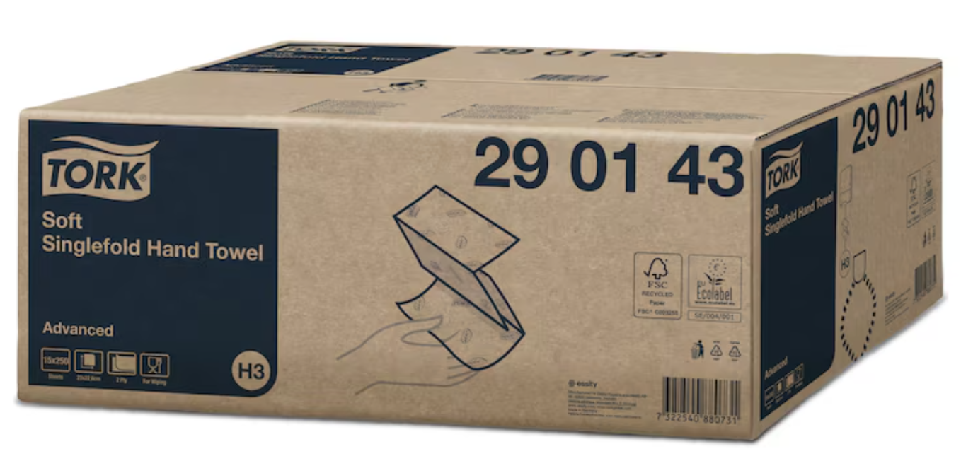 Papierhandtücher V-Falzung Special 2-lagig 1 x gefaltet 24 x 23cm Recycling Papier 3.990 Stück im Karton, 32 Karton je Palette