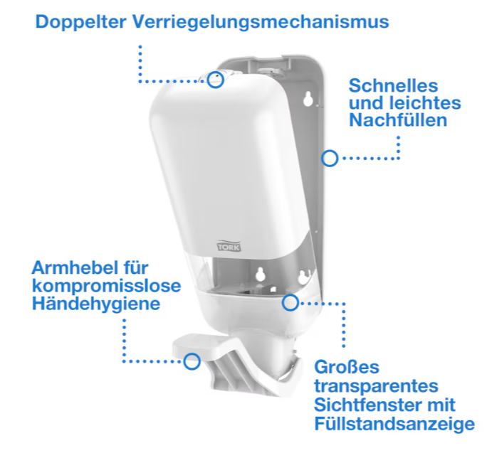 [Hygienespender für alle Bereiche] -> Seifen- und Armhebelspender