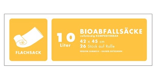 Bio-Abfallsäcke 10 Liter 42 x 45cm ohne Henkel aus kompostierbarer Maisstärke DIN zertifiziert nach EN 13432, 35 Rollen a' 26 Stück im Karton