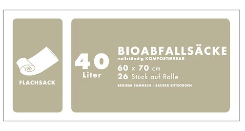 Bio-Abfallsäcke 35 Liter 50 x 60cm ohne Henkel aus kompostierbarer Maisstärke DIN zertifiziert nach EN 13432, 40 Rollen á 20 Stück im Karton