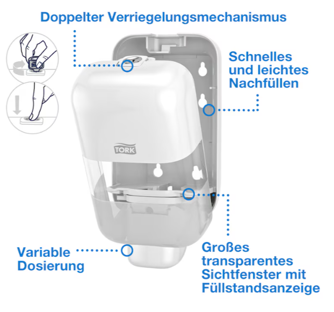 weiß, Sichtfenster abschließbar, nachfüllbar mit 525ml-Flasche, H223,6/B111,9/T99mm
