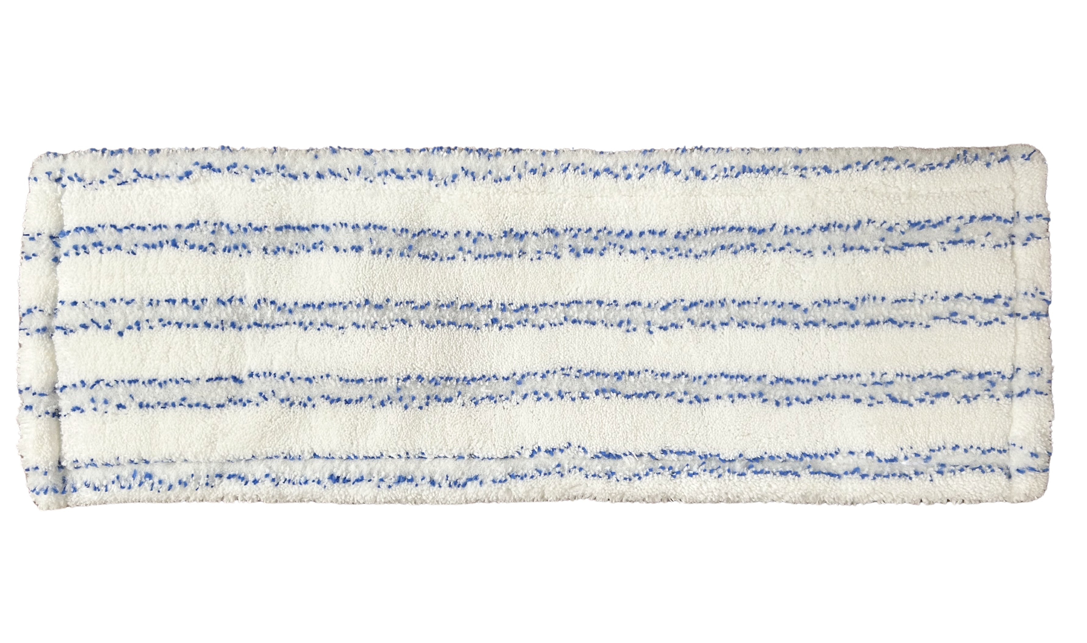 Mopp Mikrofaser 50cm weiß mit weichen blauen Borstenstreifen mit Taschen und doppelt vernähten Laschen, 50 Stück im Karton