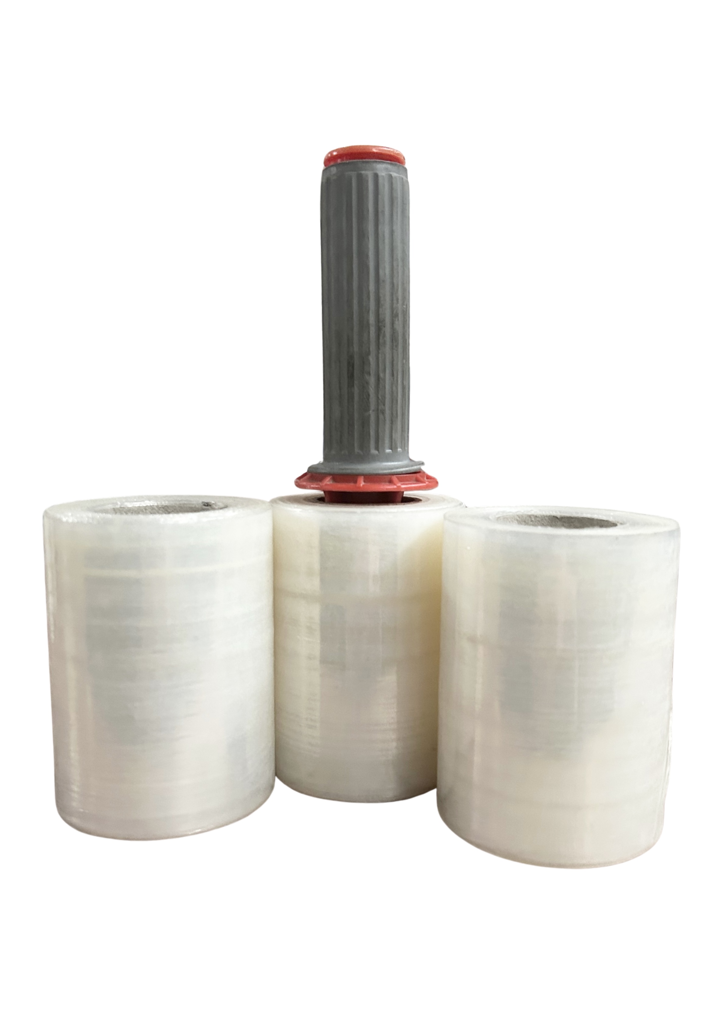 Stretchfolie aus PE für Handy-Stretchabroller transparent 20my 150lfm 10cm breit, 50mm Innenkerndurchmesser, 40 Rollen im Karton