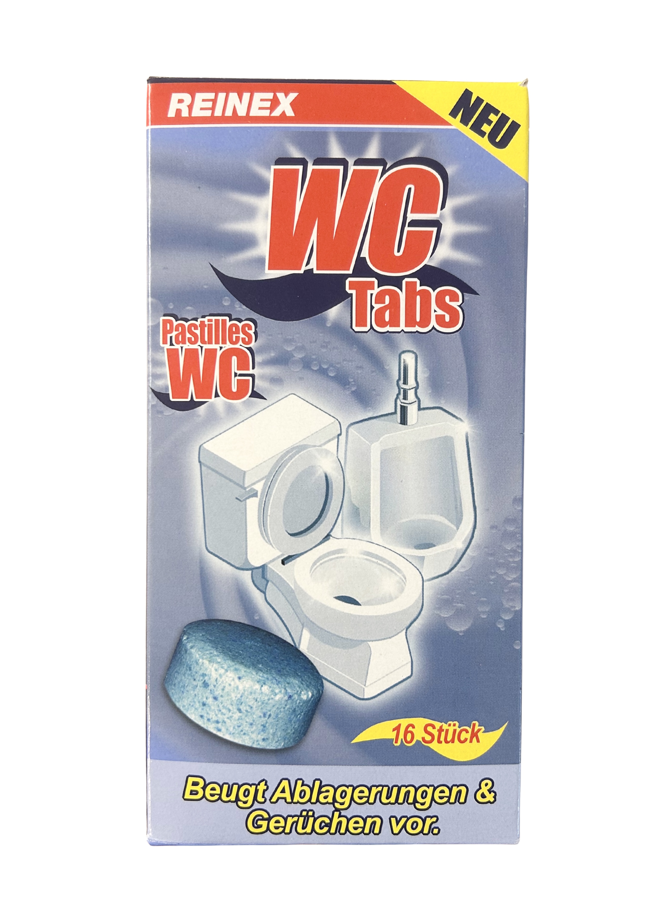WC-Reiniger und Entkalkertabs für WC und Urinale 3-Phasen-Tab 16 x 20g in der Packung, 8 Packungen im Karton